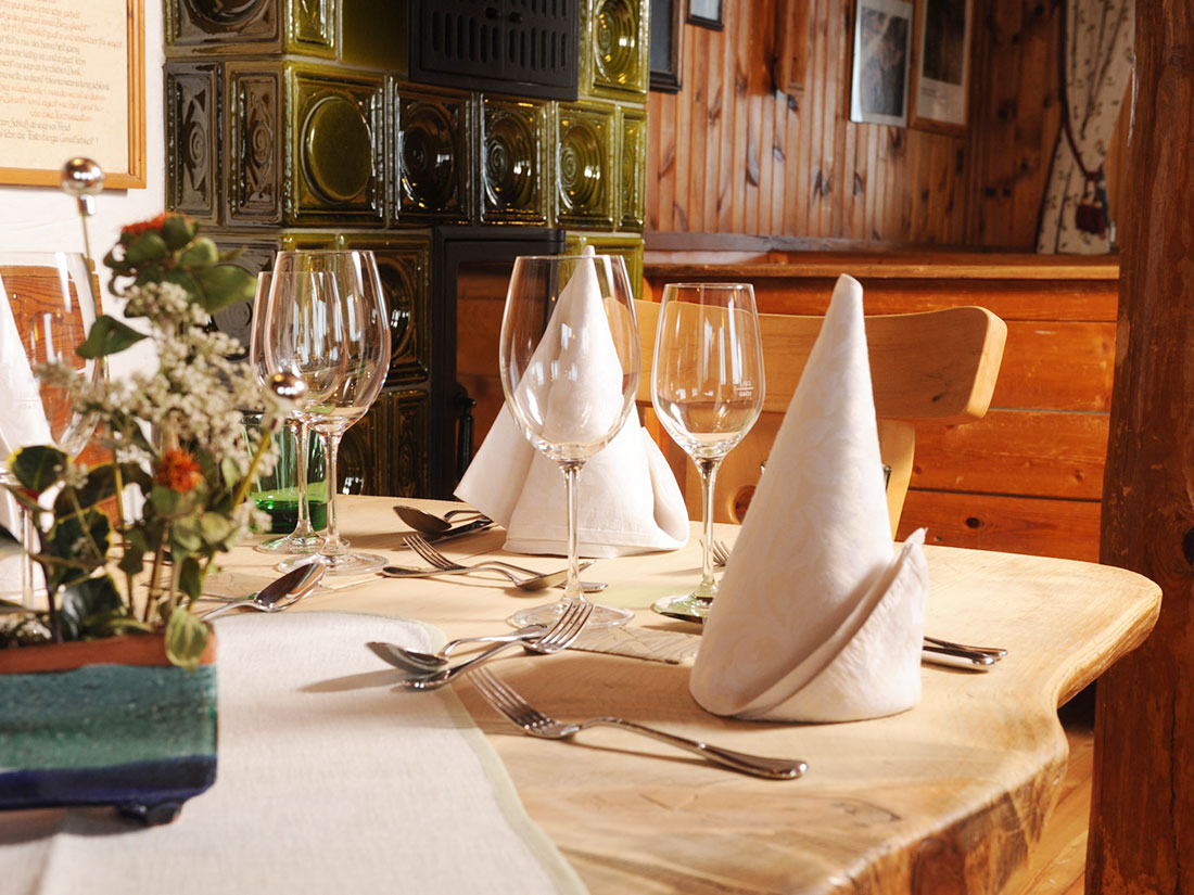 Daran glauben wir ganz fest. Die Frischküche ermöglicht es uns, dem Kochen wieder die Zeit, Liebe und Freude zu schenken, die gute Qualität einfach verlangt. Tagsüber à la carte. Abends bitten wir um Reservierung. Natürlich und geschenkt - die Lage; 1050 m über dem Meer, 300 m über der kleinen Metropole Schladming - direkt an der Weltcup- Abfahrtspiste auf der Planai.